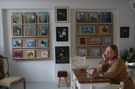 Lotte Kjoeller with her paintings
